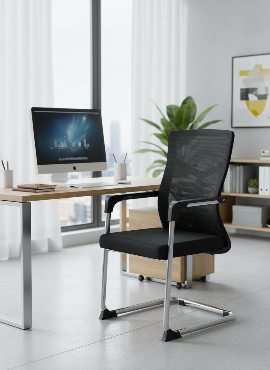 Experience superior comfort and support with our ergonomic mesh office chair. Designed for professionals who value both style and functionality, this chair features a breathable mesh backrest and sturdy cantilever frame, making it perfect for offices, conference rooms, or home workspaces.